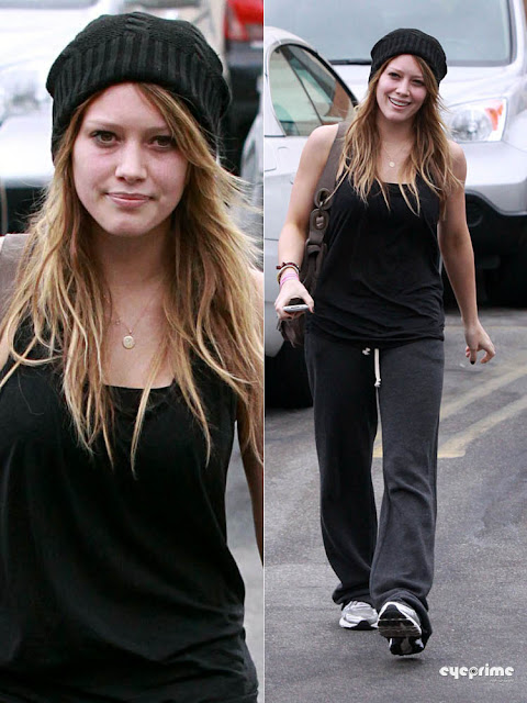 Hilary Duff stops at Starbucks to pick up a coffee in Studio City on September 7, 2010. Hilary wearing a winter beanie cap on a gloomy day. The blonde beauty made a trip to the gym before grabbing coffee, working on her toned body for over an hour and half.